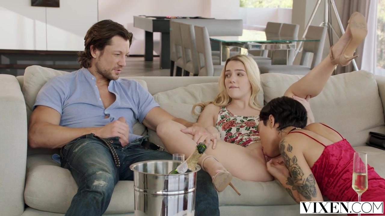 Kenna James, Honey Gold - Молодые 20-летние подруги соревнуются, кто же лучше насадится на член знакомого. А казанова только рад снова приглашать в гости шаболд. Две подружки любят ебаться с папиком и мутить жмж секс. Неистовые дамочки удобно устраиваются на диване рядом с бесстыдным мужланом и облизывают дружно мощный большой хуй, делая двойной минет. Но это только начало. Куннилингус подбадривает красотку, которую в данный момент не трахают, а затем леди меняются. Зажигательные стельки не в силах сдержать возбуждение и истошно кричат от счастья, когда вульгарный осеменитель все глубжде засаживает эклер в писи дрянных баловниц.